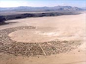 Community Services received its current name in 1999. At that time, its participation in the planning of Black Rock City grew to include many citywide issues, such as several zoning questions. How could large-scale sound be managed without stunting creativity or freedom? In 2001 we located large-scale sound installations at the ends of our city, at two and ten o’clock, with speakers facing outward onto the open playa. This positioning significantly lessened the unwanted effects of sound and we’ve received few complaints. Where should our portable toilets be placed, and how might this be done in a way that was convenient for participants, but allowed easy cleaning? This year we massed our porta-potties in larger banks at locations in the middle of our city. We also installed banks of portable toilets on the open playa. The result was an enormous success. These toilets remained clean throughout the event. How could we prevent participants from clogging these toilets with MOOP (matter out of place) that interfered with toilet servicing? Early in the year Burning Man undertook a public information campaign. Its memorable motto: “If it wasn’t in your body, don’t put it in the potty”. This message was reiterated many times and repeated by our Greeters as people entered our city. The response was enthusiastic and there were no interruptions of service in 2001. Burning Man has learned that good citizenship primarily depends of good communication, and we have organized to do this. We have also learned that many social conflicts can be solved by zoning and placement. Because we reinvent our city every year, we possess an advantage that other cities lack. As planners, we try to listen very carefully to participant concerns, and we are always prepared to change things.