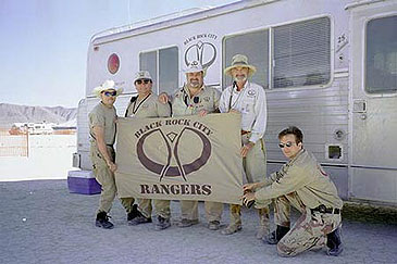 The Black Rock Rangers were founded in 1992 when a small band of volunteers equipped with eight CB radios purchased at thrift shops patrolled the desert for strays and stragglers. Since that time, our little village on the playa has become a city that occupies four square miles. The Ranger organization has grown in size and complexity to meet the needs of a city populated by thousands of people.