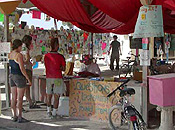 During the event, our shade structure offered a cool meeting place in the midst of the hot days. At times, it seemed to function as an inadvertent alternative to the Center Camp Café. People just enjoyed hanging out and helping out! Some terrific volunteers suggested ways to further improve our service as they worked on wonderful projects like the laminate design, pocket-sized maps of the city, and our Red Tide cocktail party.