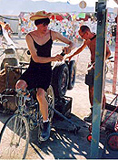 Also on the drawing board is a plan that has grown from roots in the Earth Guardians. It is a simple idea-to visit all registered theme camps, and as many as possible nonregistered camps, and talk with residents about their recycling and waste-reduction efforts. These visits would educate participants if necessary, congratulate them if warranted, and award the outstanding camps with Recycle Camp stickers to show off their green status. We are still looking for a dedicated bike mechanic to join our volunteer ranks. No worries, though, because we still have a tight relationship with RE:Cycle Camp, also known as BRC Bike Repair & Bait Shop. We were again neighbors this year, and it worked out well as usual.