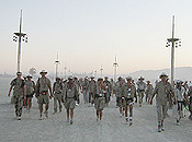 Change equals growth. Internally the year was full of struggles that pushed some to their limits, but the commitment to the cause was unwavering. The playa saw an operation filled with committed, capable and eager Rangers, Emergency Services responders and Gate and Perimeter staff, many of whom at the end of 2002 are stepping forward into positions of leadership for 2003. There is a vitality, productivity and creativity in these groups that is infectious. New reporting structures and departmental names are just the visible outlines of the development of a tighter team of volunteers committed to the safety and well-being of all Burning Man participants.