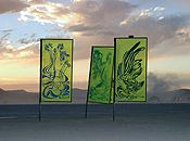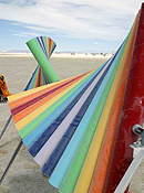 The Art department received 80 grant proposals in 2004, of which we funded 28. Our funding process begins in February, when proposals are due. We assess the proposals and three art department staff members reach our funding decisions by consensus. We do this only after talking with the artists, asking questions, and gathering additional information that we need to make an informed decision. After decisions are made, we have another conversation with the artists, covering all aspects of their projects including use of heavy equipment, burn scar protections, details of any flame effects they may be using, placement, and any other issues. At this point, our grant contract is discussed and signed, after which payments commence. Throughout the spring and summer, we work closely with the artists to ensure that they will successfully complete their projects, follow safety guidelines, and protect the playa. In addition, we follow up on the back end of the projects, inspecting the art sites for clean-up accountability and burn scar protection. This year we instituted a check-out system, asking the artists to officially check out with us before leaving the playa. We took this step not only to make sure the art sites would be left clean, but also to get feedback from the artists, to thank them, and to resolve any issues they might have. Typically for a first attempt at a new policy, only some of the artists actually checked out with us, even though this requirement was spelled out in their contracts. Next year this expectation will be better communicated. We’d like everyone to have a positive experience from start to finish, which is sometimes difficult in the harsh and chaotic environment of the playa.