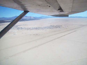 Various constraints force placement of the Airport’s runway in what may be the bumpiest part of the playa. The drifts and “whoop-de-doos” in the area last year were a lot of fun to drive over in an off-road vehicle, but most pilots didn’t appreciate the extra excitement on take-offs and landings. This year, thanks to DPW effort and some special equipment, we had a great runway. It was wide, perfectly smooth, flat, and quite reasonably firm, considering the extra-soft conditions of the playa for 2004.