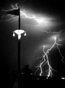 - Dust, wind, lightning and rain provide a dramatic shower.
