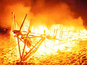 - Bystander clasps figure’s hand as it burns — first spontaneous performance.