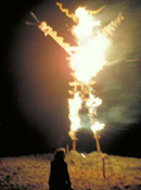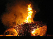 - After a jet car drive-by (piloted by Deso Molnar), the Burning Man is lit with a flame-thrower.