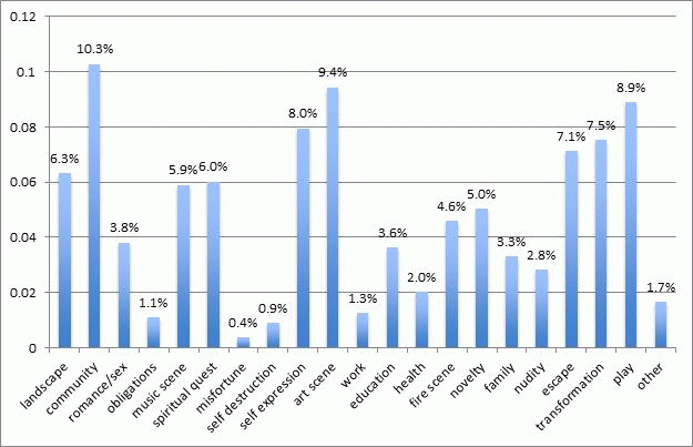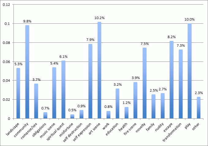 Question: What reasons first brought you to Burning Man? Fill in all that apply.