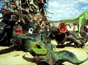 Sculpture by Michael Christian, assisted by Cristina Harbridge, Jay Kravitz, LoriAnn Huft, KaosMiKitty, Todd Curtis, David Andreas, Jim Fuhrer and crew: Painted fiberglass over steel armature on airplane wheels with TV monitors and mixed media.
