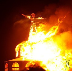 This year, the Man stood atop the Pavilion, the last — and perhaps most spectacular — structure ever designed by Burning Man’s long-time city designer and architect Rod Garrett. Rod passed away just before the 2011 event, and his legacy will be felt by every person who ever has the opportunity to experience Black Rock City. His vision, talent and creativity are very much missed in the Burning Man organization.