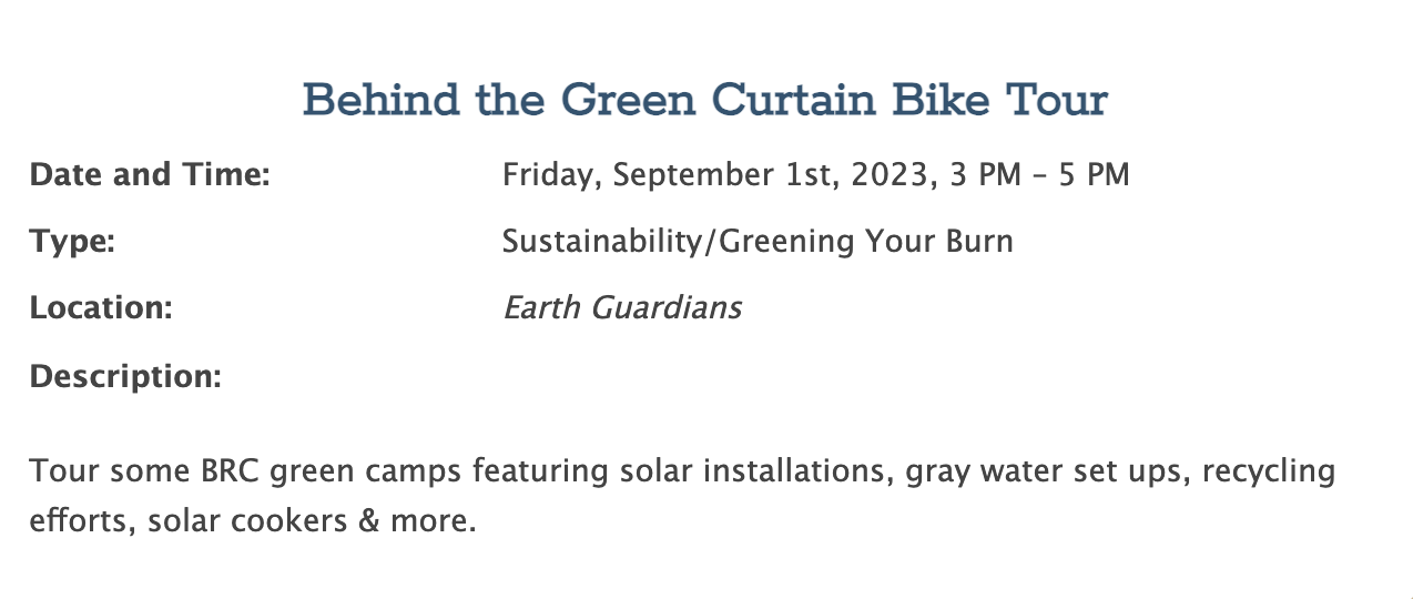Below are just a few of the exciting activities and events you can join, focused on sustainability and diversity. Put these on your radar, check out these and many others in your WhatWhereWhen upon arrival in BRC, and get plugged in to make 2023 your most radically inclusive and green burn yet!