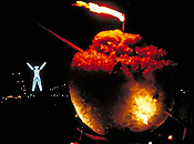 This is the One Tree. This is public art. You can see people interacting with it. It generated society around itself. It put people in a relationship to one another. It dripped water through those branches and people bathed in it. It also generated steam, and, if we look at the next slide, you’ll see it sprouted leaves of flame. This was by Dan Das Man, a brilliant artist, and if you come to the event I’m sure you’ll see more work by him.