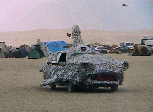 - After a jet car drive-by (piloted by Deso Molnar), the Burning Man is lit with a flame-thrower.