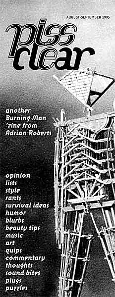 "Ah such auspicious beginnings. The first Issue of Piss Clear was simply a photo-copied 'zine -- two sheets of 8.5" x 11" paper folded lengthwise, so it could be easily stapled together. I think I printed just 200 copies.