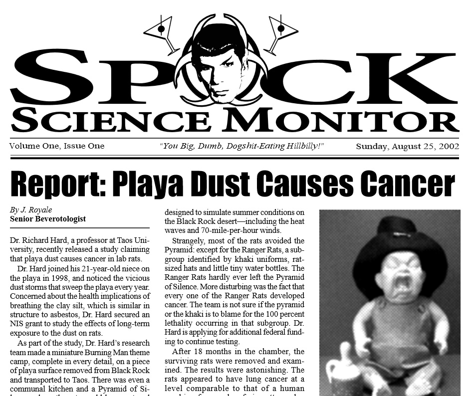 - Burning Man goes to court: in an attempt to stop the sale of unauthorized nude videos shot in Black Rock City, Burning Man has entered a suit against Voyeur Video requesting an injunction against the distribution of their unauthorized footage from the event.