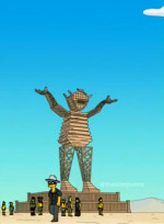 | Homer Simpson and Family took a trip to "Blazing Guy" in the 7th episode of The Simpsons' 26th season, "Blazed and Confused. |