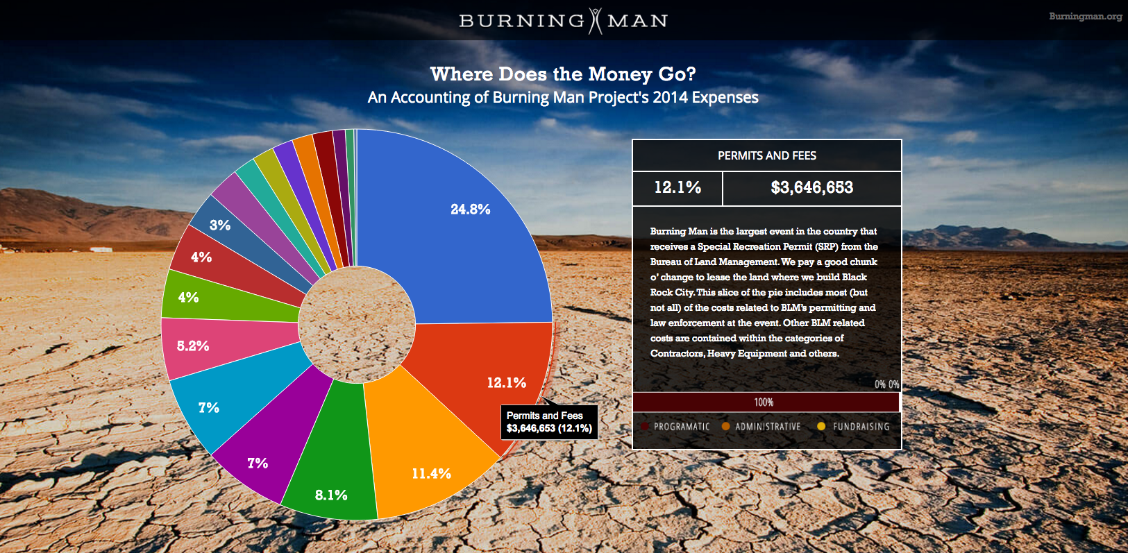 Burning Man 2014 was marked by superlatives — a massive 105’-tall Man, standing with feet planted firmly on the playa floor; a torrential rainstorm that wreaked minor havoc and shut down Black Rock City for Monday of the event; more art, theme camps and scheduled activities than ever before; and a third consecutive sold-out event, hosting a peak population of 65,922 participants (the widespread reports of Monday’s rainstorm likely responsible for keeping us shy of our population cap of 70,000 participants).