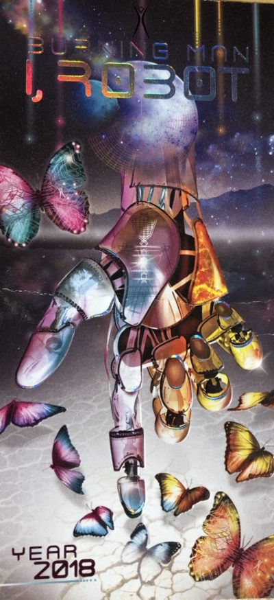 IAMAI and the Burnbots graced this year's Man Pavilion. As a manifestation of the I, Robot theme, the 2018 Man base experience offered an exploration of humankind’s decidedly mixed feelings about algorithmic intelligence, cybernetic augmentation, and the mystery of what it means to be human in an increasingly automated world. Twenty installations circled the Man including works by : Robotopod Inclusions by Annabel Lee Allen (Ashland, OR), Squidartha by Alexander Griffin (Portland, OR), Cyber Fossils by Leonid Kim (Moscow, Russia) and Future’s Past Circuitry Patterns by Kate Raudenbush (New York, NY).